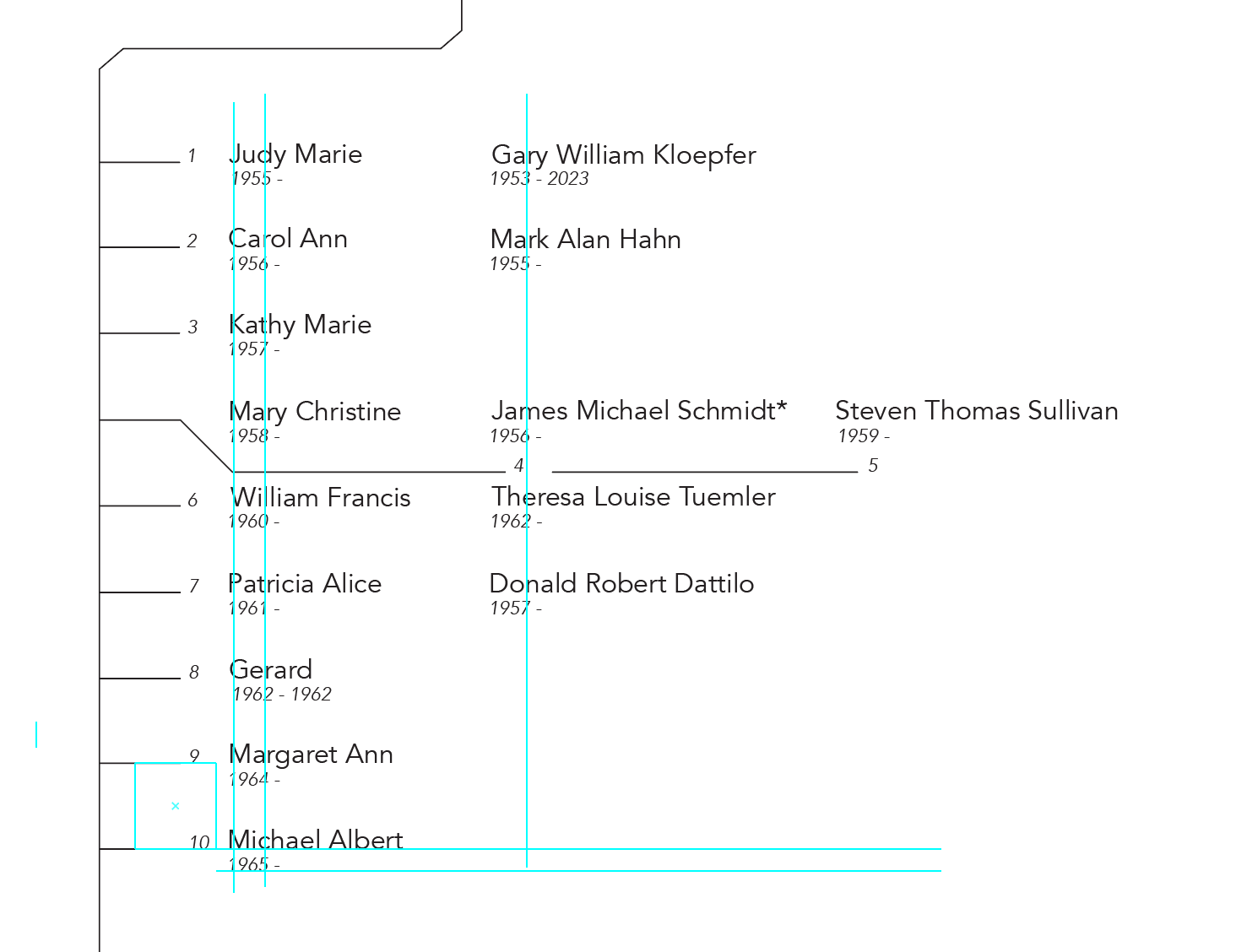 My goal was to organize the names in a way that would be easy for any member of my family to track their ancestors.