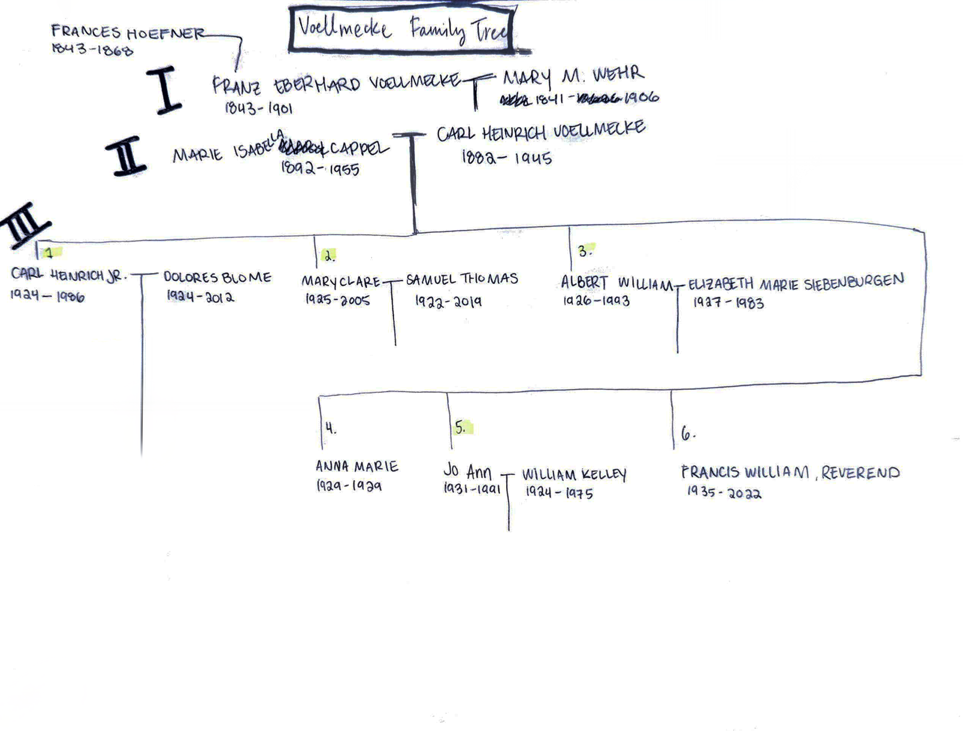 To organize over 100 people, I created a code system to organize people according to their ancestors.