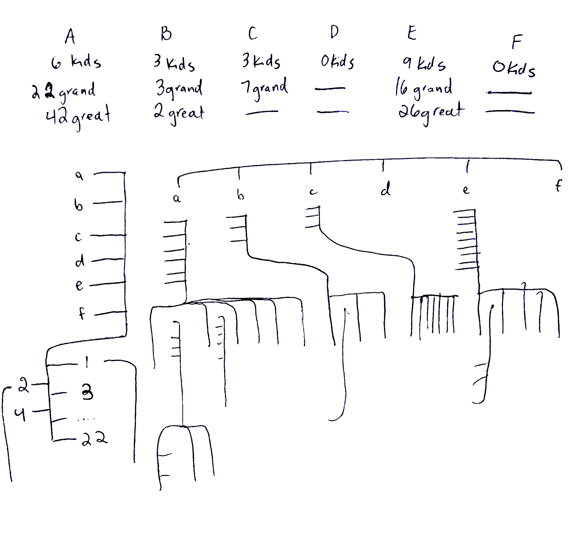 I started with 13 pages of rough sketches consisting all the information I needed for the family tree .